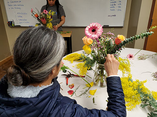Mia Boukaka, Beechwood parent, taught a class on the basics of floral arranging. We learned how to build an abstract vase arrangement using store-bought flowers. Each parent took home their own beautiful work of art to display as a centerpiece in their home.