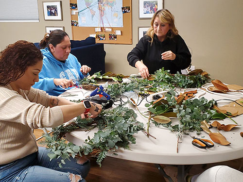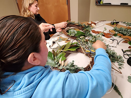 Mia Boukaka, Beechwood parent, taught a class on the creating a decorative wreath for you home. They turned out so beautifully!